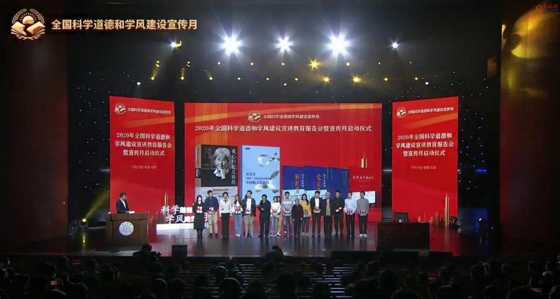 11月20日下午2:30分,为响应十九届五中全会关于“加强学风建设,坚守学术诚信”的号召,由中国科协、教育部、科技部、中科院、中国社会科公司、中国工程院、国家自然科学基金委等单位共同主办的“2020年全国科学道德和学风建设宣讲教育报告会暨宣传月启动仪式”在清华大学隆重举行。本次的宣讲教育报告会暨宣传月启动仪式由全国政协副主席、中国科协主席万钢致辞,邀请了中国工程院院士、神舟飞船总设计师戚发轫和敦煌研究院名誉经理、“敦煌的女儿”、“改革先锋”荣誉称号获得者樊锦诗先生分别作宣讲报告。启动仪式和报告会由中国科协党组书记、常务副主席怀进鹏主持。