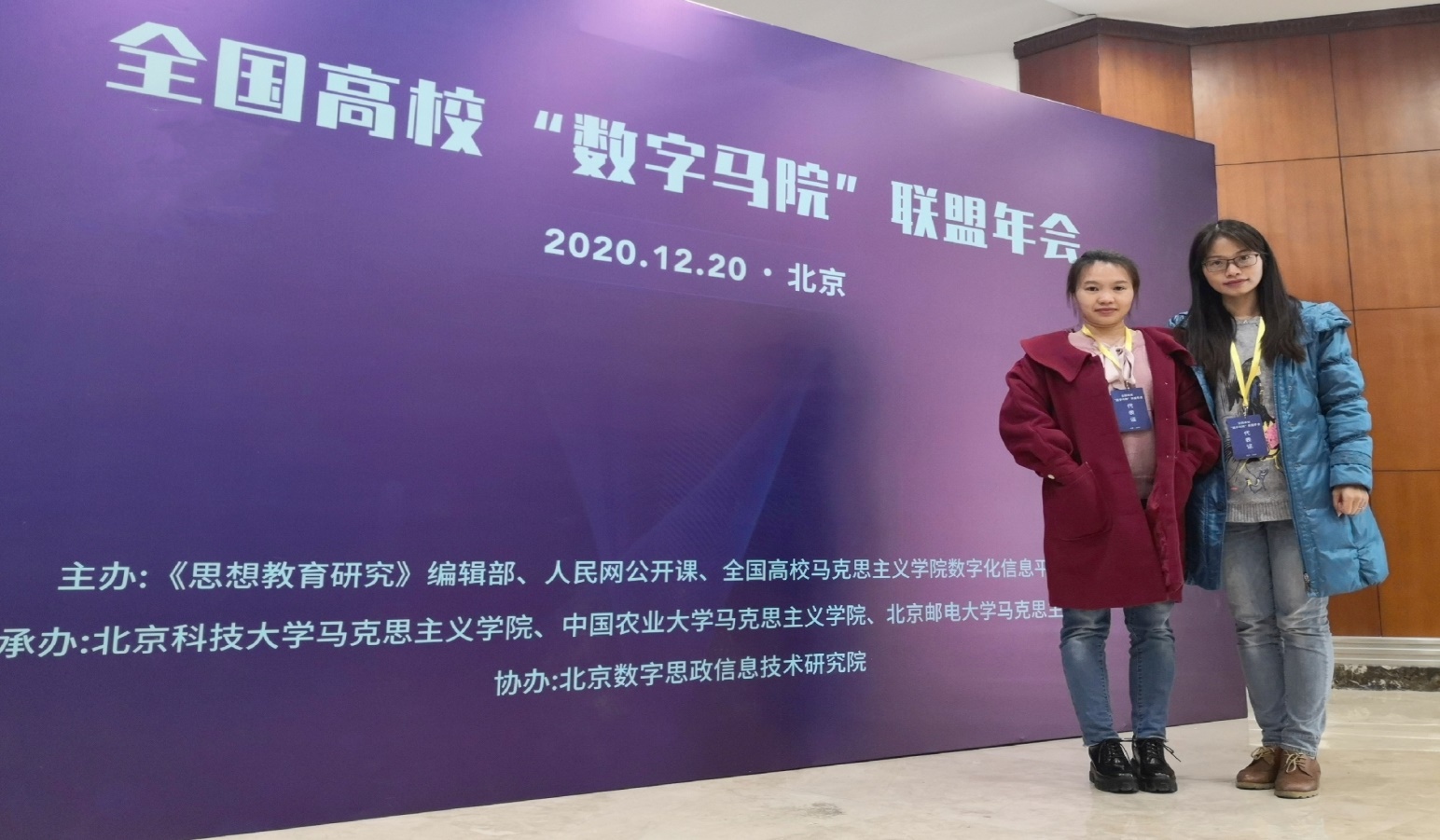 2020年12月20日,由《思想教育研究》编辑部、人民网公开课、全国高校bb贝博艾弗森官方网站数字化信息平台联盟主办的全国高校“数字马院”联盟年会在北京举行。本次年会由北京科技大学bb贝博艾弗森官方网站、中国农业大学bb贝博艾弗森官方网站、北京邮电大学bb贝博艾弗森官方网站承办,北京数字思政信息技术研究院协办。bb贝博艾弗森官方网站教师代表刘霞、谢梦莹应邀参加了本次成立大会。