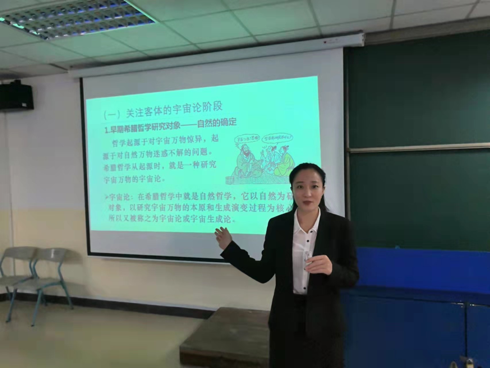 许老师从古希腊哲学的缘起谈起,将古希腊哲学的发展分为关注客体的早期希腊哲学、关注主体的古典希腊哲学和关注人生伦理的晚期希腊哲学三个阶段。当古希腊人对自然不解而不断追问宇宙万物最初的本原时,希腊哲学便呈现为关注客体的宇宙论。面对赫拉克利特给哲学带来的挑战,古希腊人看到宇宙发展的秩序和规律,开始主张用理性、用思维来研究世界的本质和规律,希腊哲学便转变为关注客体的本体论。当古希腊哲学家沿着客体的思路众说纷纭、莫衷一是时,终于看到了认识的主体对认识活动的影响,于是古希腊哲学便开始了关注主体人的古典阶段。由于晚期希腊的战乱与动荡,人们陷入了对生、死等人生哲学问题的思考之中,于是,希腊哲学便走向了关注人生伦理的道路。