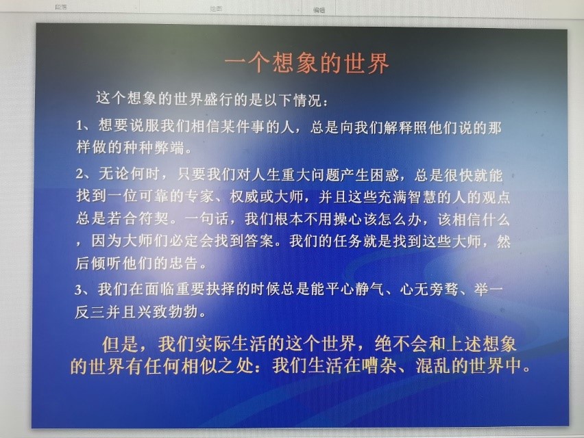 由于时间有限,后面的内容:批判性思维的重要性,发展批判性思维能力以及何为理性,等等,且听下次分晓。