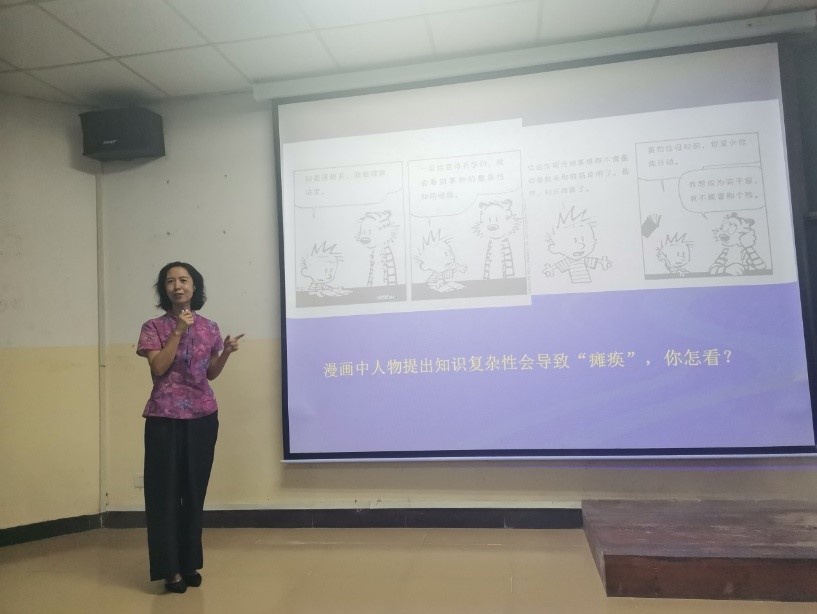我们知道那个想象的世界和我们实际生活的世界相差太远:我们生活在嘈杂混乱的世界中。针对漫画中的人物提出:知识的复杂性会导致“瘫痪”,同学们纷纷发表自己的看法。