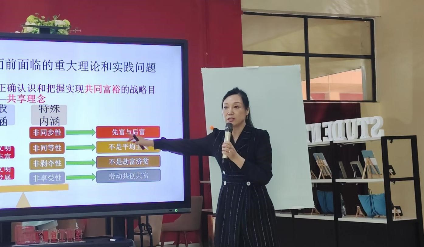 王彦玲教授从2022年两会政府工作报告入手,分析了报告中贯彻新发展理念的政策措施,充分体现了创新、协调、绿色、开放、共享的新发展理念,特别强调了以创新为驱动的高质量发展。使员工充分理解新发展理念的深刻内涵,充分认识在贯彻新发展理念时遇到的方方面面的挑战,理解党中央解决发展中存在的问题的思路和原则,以及贯彻新发展理念进行的尝试和采取的措施。王彦玲教授在教授中还深入指出,企业是创新的主体,人才助力创新,制度是高质量发展的保障。王彦玲教授列举了大量生动的案例分析了我国贯彻新发展理念的必要性和必然性,分析了在贯彻新发展理念和高质量发展等方面还存在着一些问题,指出要综合运用包括制度、法律、规则和教育等治理手段,在风云变幻的国际形势下使中国特色社会主义持续快速发展。讲授过程中,师生交流互动,气氛热烈。