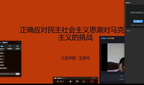 12月20日9:40-10:40,bb贝博艾弗森官方网站王彦玲教授在雨课堂教学平台,为员工做了《正确应对民主社会主义思潮对马克思主义的挑战》的学术报告,员工142人参加。
