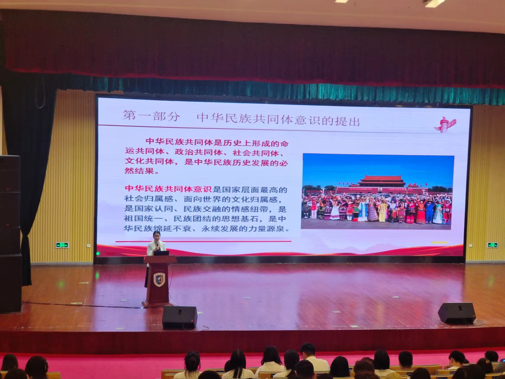 赵晓乐书记从中华民族共同体意识的提出、为什么要铸牢中华民族共同体意识、如何铸牢中华民族共同体意识三个方面,展开此次党课。她告诉同学们,中华民族共同体是历史上形成的命运共同体、政治共同体、社会共同体、文化共同体,是中华民族历史发展的必然结果。中华民族共同体意识是国家层面最高的社会归属感、面向世界的文化归属感,是国家认同、民族交融的情感纽带,是祖国统一、民族团结的思想基石,是中华民族绵延不衰、永续发展的力量源泉。“四个共同”明确阐释了正确的中华民族历史观的深刻内涵是中华民族共同体之所以“共同”的历史根基,历史传统和思维定式为中华民族实体化提供了强大凝聚力。铸牢中华民族共同体意识是建立在“四个共同”这个牢固历史根基上的。各族人民共同的价值取向来源于相濡以沫的共同经历和共同记忆,这种共同经历和共同记忆共同合成中华民族休戚与共、荣辱与共、生死与共、命运与共的强大凝聚力。从历史层面我们看到,铸牢中华民族共同体意识是历史发展的必然。从现实层面来讲,铸牢中华民族共同体意识也是新时代党的民族工作的必然要求。
