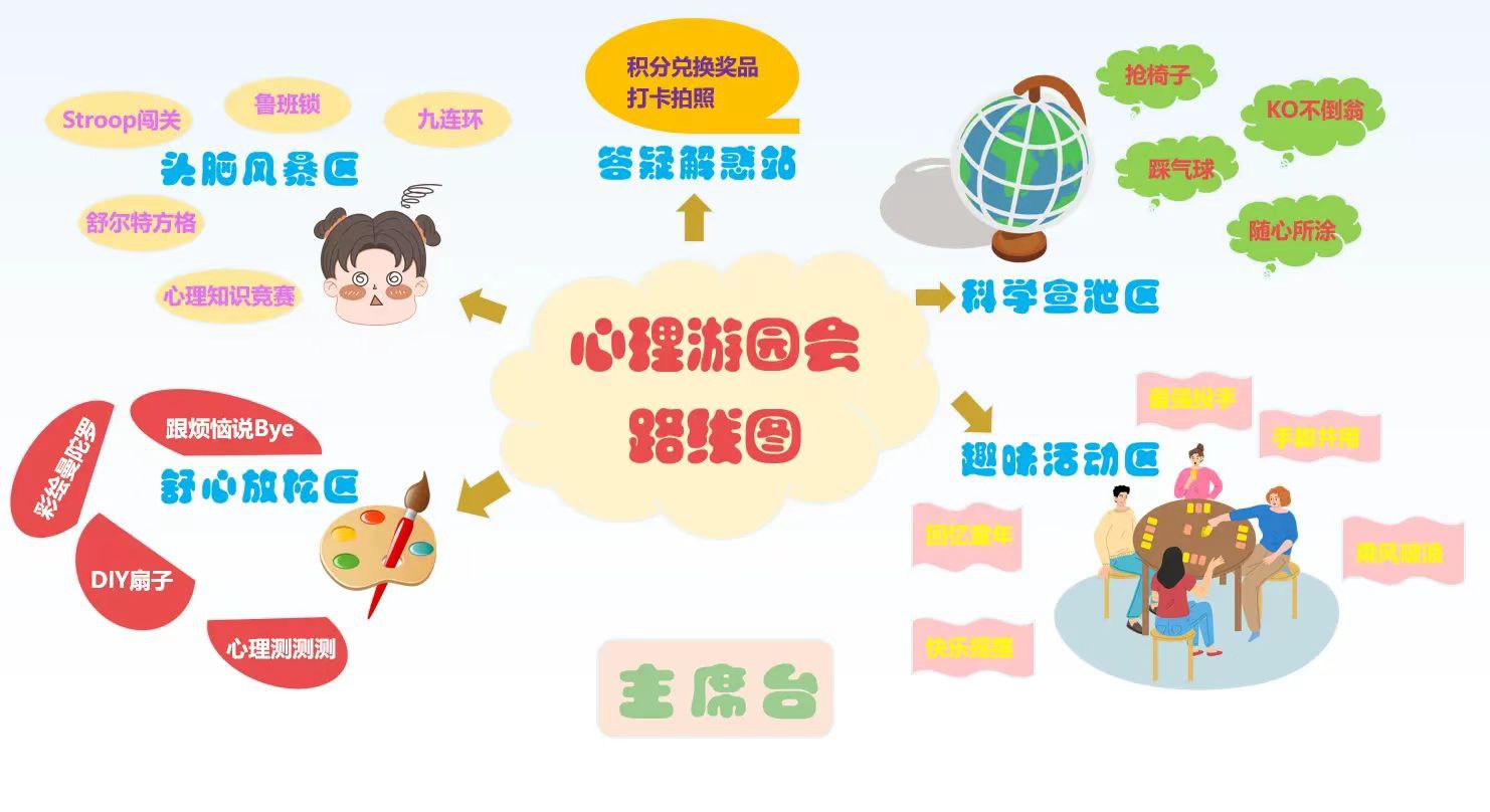 心理游园会,如同一个心理“集市”,分七大区域各具特色。答疑解惑站提供专业解答,头脑风暴区锻炼心智,趣味活动区带来欢笑,舒心放松区舒展心灵,科学宣泄区释放压力,教师解压区缓解疲劳,快闪活动区带来惊喜。员工和教师均可参与体验,通过打卡赢奖品,尽享心理活动乐趣。
