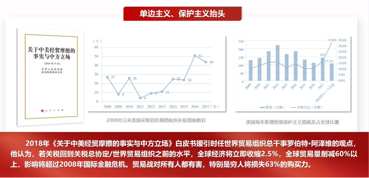 新兴市场国家和发展中国家快速发展和金砖国家异军突起造成了国际力量对比发生深刻变化,单边主义、保护主义抬头使得经济全球化遭遇逆流,美国全球霸权地位遭遇挑战致使国际体系和国际秩序深度调整。