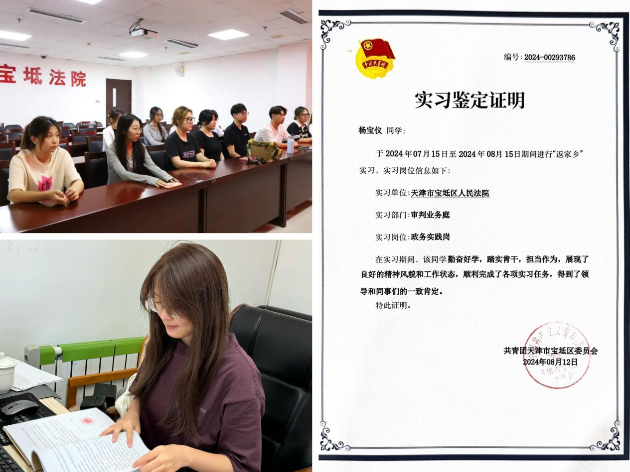 暑假期间,我有幸能够参加“返家乡”社会实践活动,社会实践于天津市宝坻区人民法院审判业务庭岗,历时一个月的社会实践让我受益良多,感慨颇深。