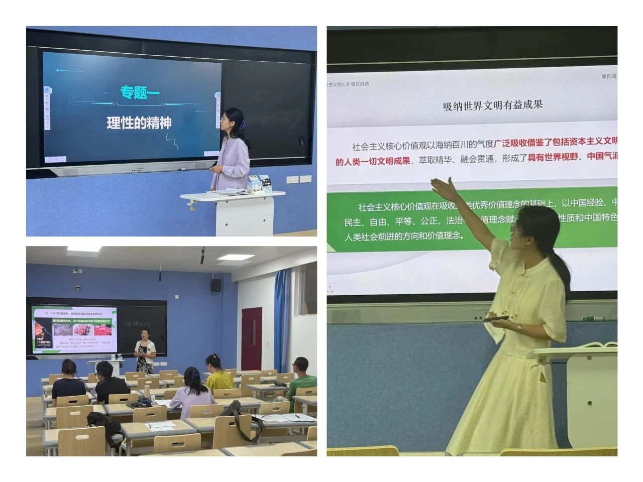 集体备课中,全体教师围绕《思想道德与法治》《中国近代史纲要》《逻辑与批判性思维》等课程内容,认真筹备、精心打磨,在依托备课平台展示创新性教学方法的同时,结合专家点评指导,主动对标对表找寻不足,从而更好地在后续教学中找到教学业务提升路径,更好服务于课堂实际教学。