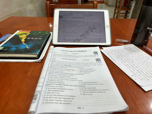 2.听力:听力部分是四级的难点之一。每天坚持做一套真题听力,做完后进行精听。精听时,先完整听一遍,了解大致内容,然后逐句听,尝试把每一句都写下来,反复听几遍听不懂的地方。此外,利用碎片化时间听英语广播,培养语感。例如,我经常在走路时听英语播客,虽然不能完全听懂,但长期坚持下来,对听力的提升很有帮助。