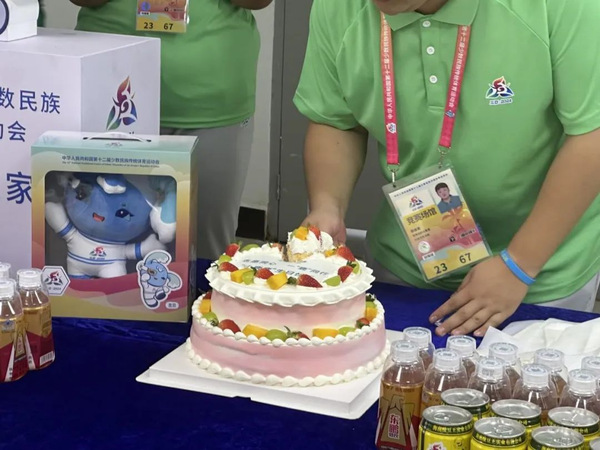 然而,就在我全神贯注于服务工作时,组委会却悄悄地为我准备了一个意想不到的生日惊喜。当我在紧张的赛事间隙踏入休息区,准备稍作喘息时,我被眼前的景象深深震撼。彩绸在空气中轻盈飘舞,烛光在摇曳中散发出温暖的光芒,而我的同事们,那些平日里并肩作战的伙伴们,正齐声欢呼,为我唱起了生日歌。那一刻,我待立当场,心中充满了震撼与感动。