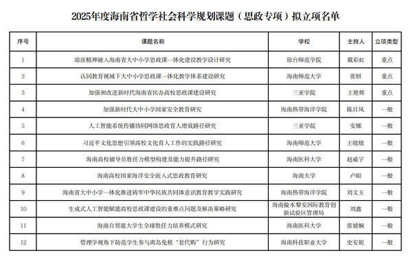 学科研究新突破!公司教师获海南省哲学社会科学规划重点攻关课题(思政专项)立项